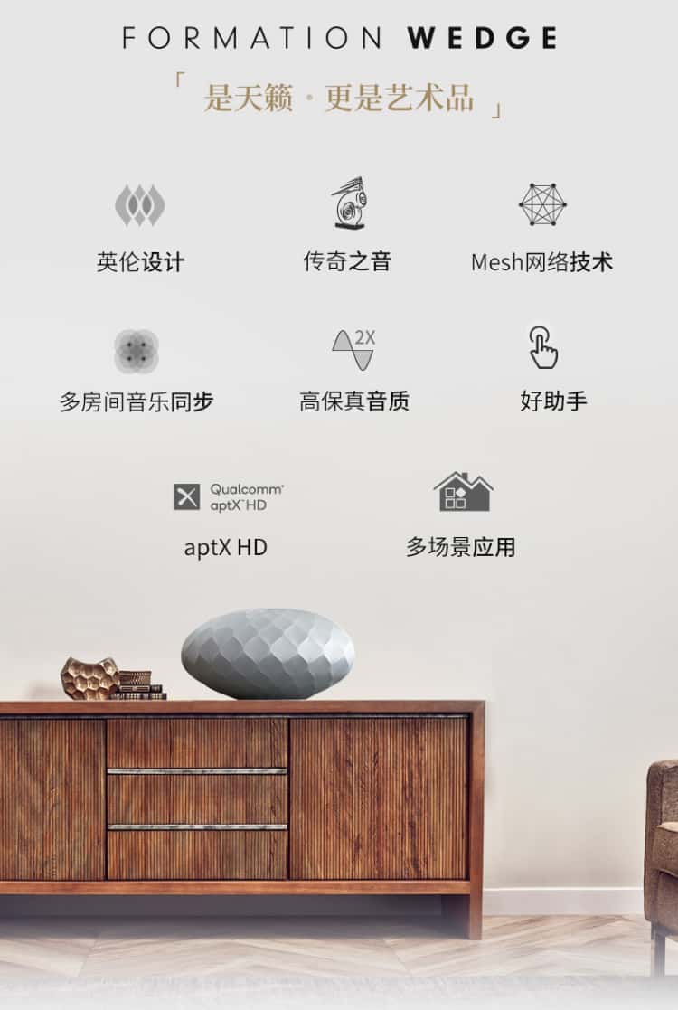 Bowers&Wilkins(宝华韦健)Formation Wedge家用无线蓝牙音响 HIFI高保真桌面音箱(黑色)