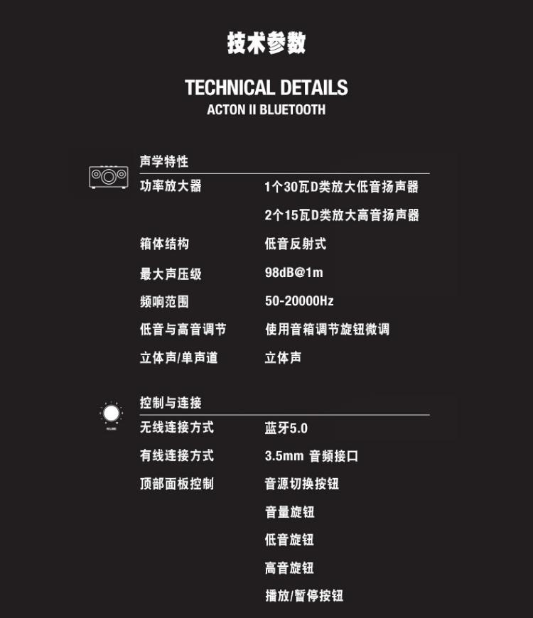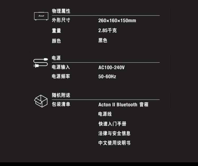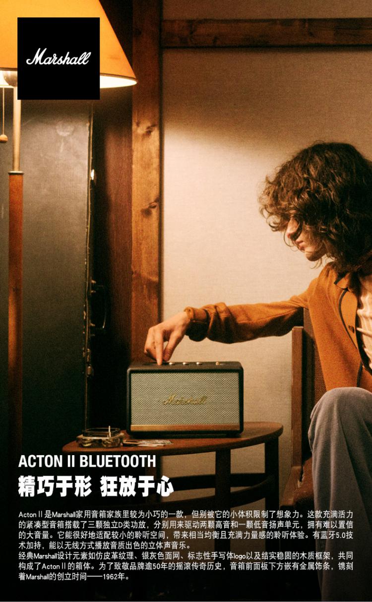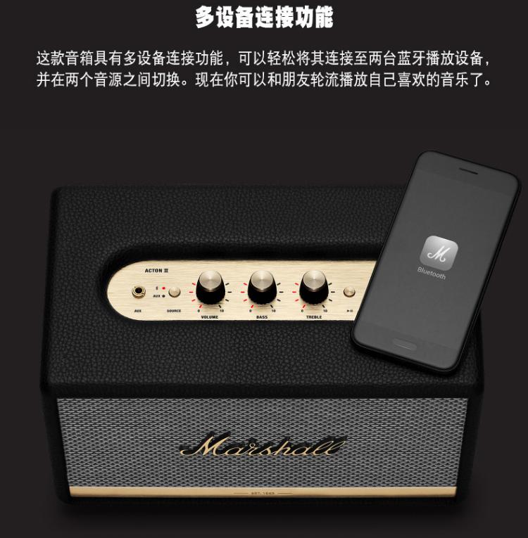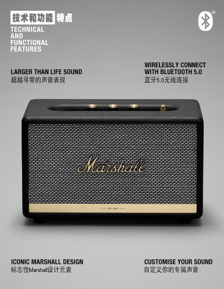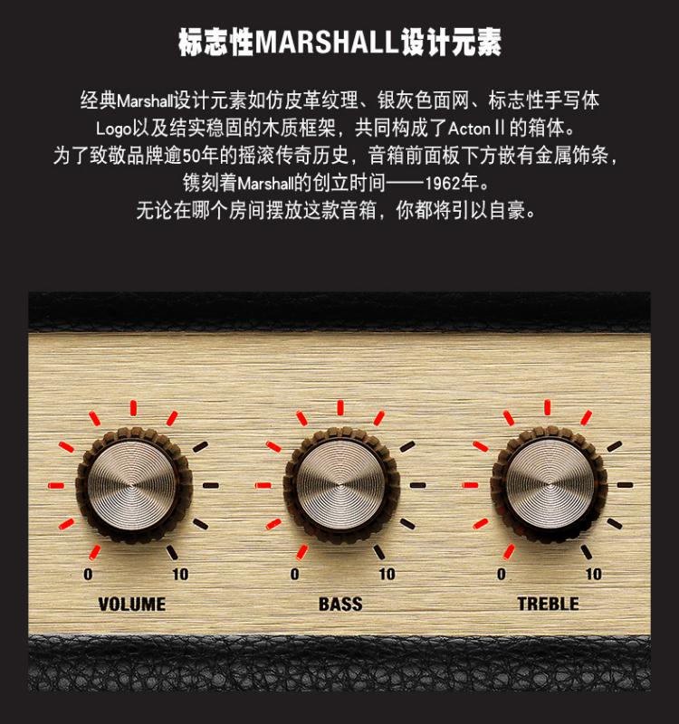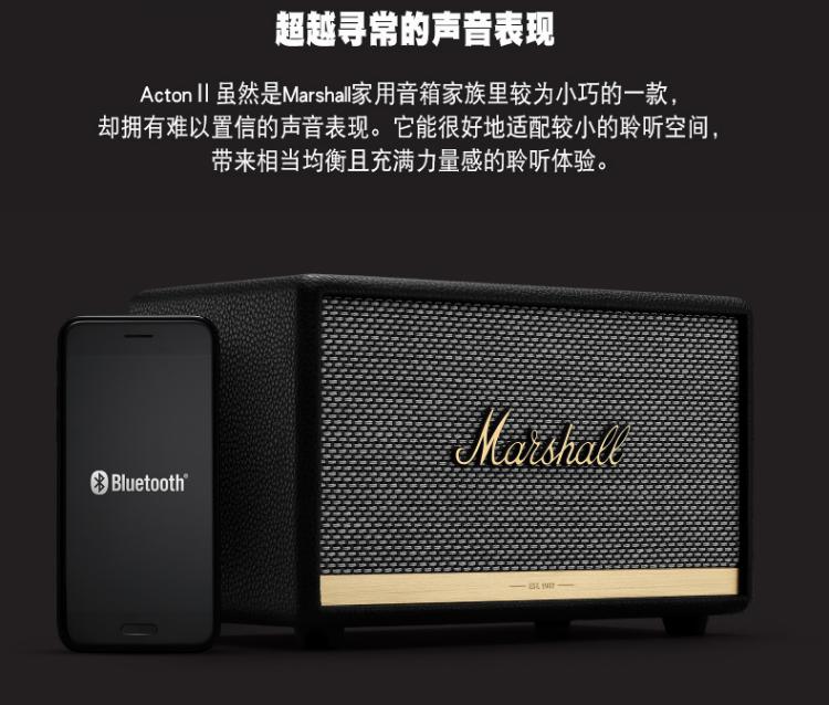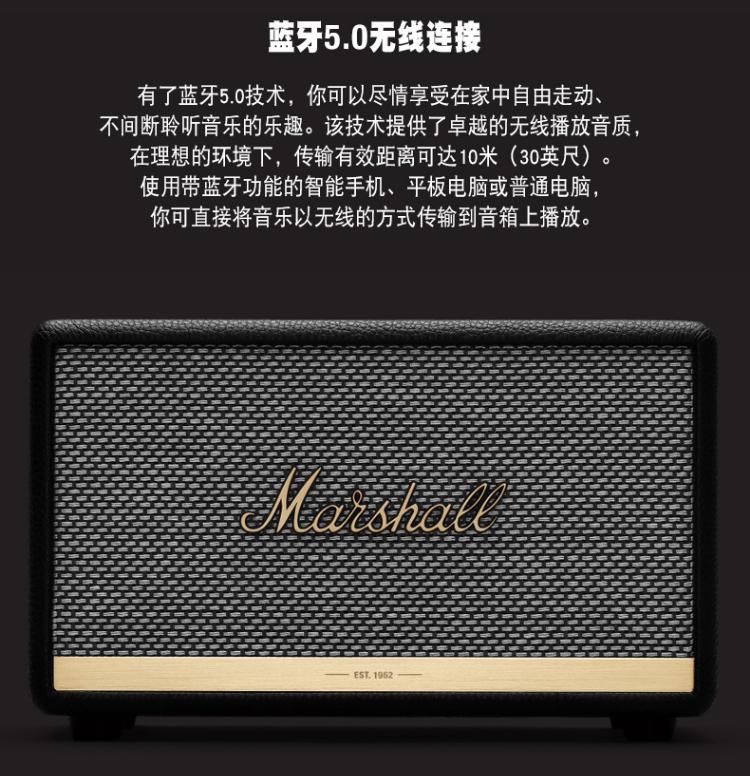马歇尔(Marshall)Acton II 摇滚重低音无线蓝牙音箱(黑色)