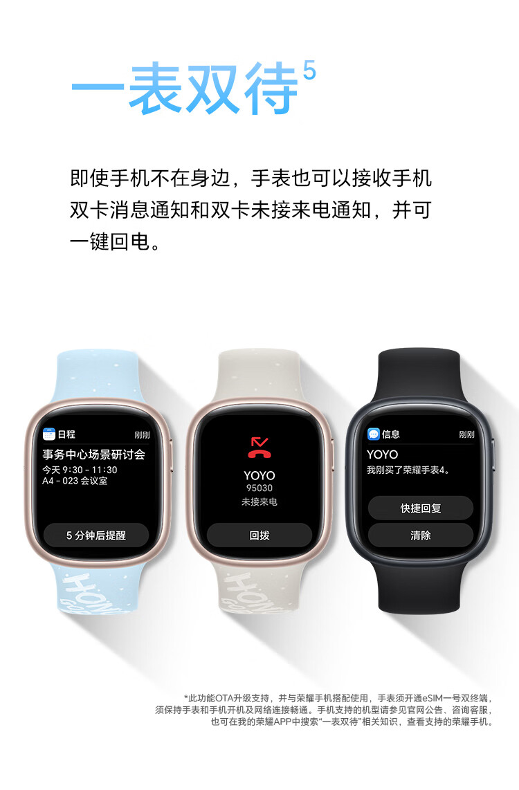 荣耀(Honor)荣耀手表4 eSIM独立通话 长续航智能手表 血氧心率监测男女运动手表TMA-L19(曜石黑)