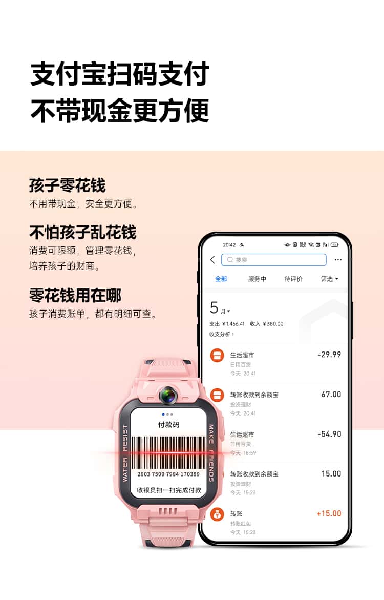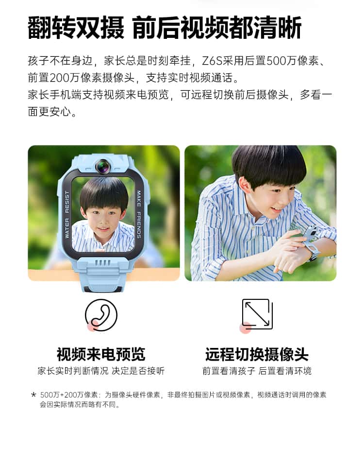小天才 儿童电话手表 Z6S 防水 GPS定位 智能视频通话 双摄拍照 (星云粉)