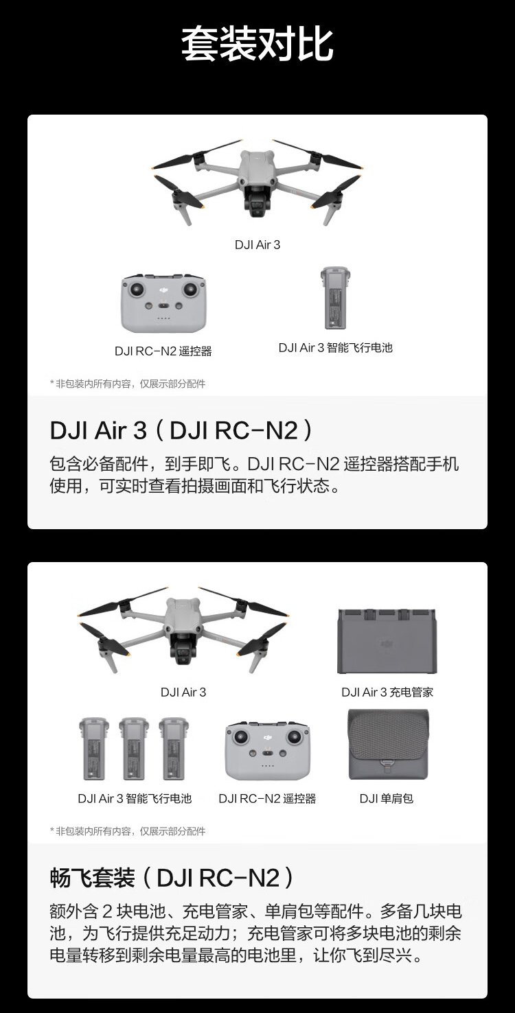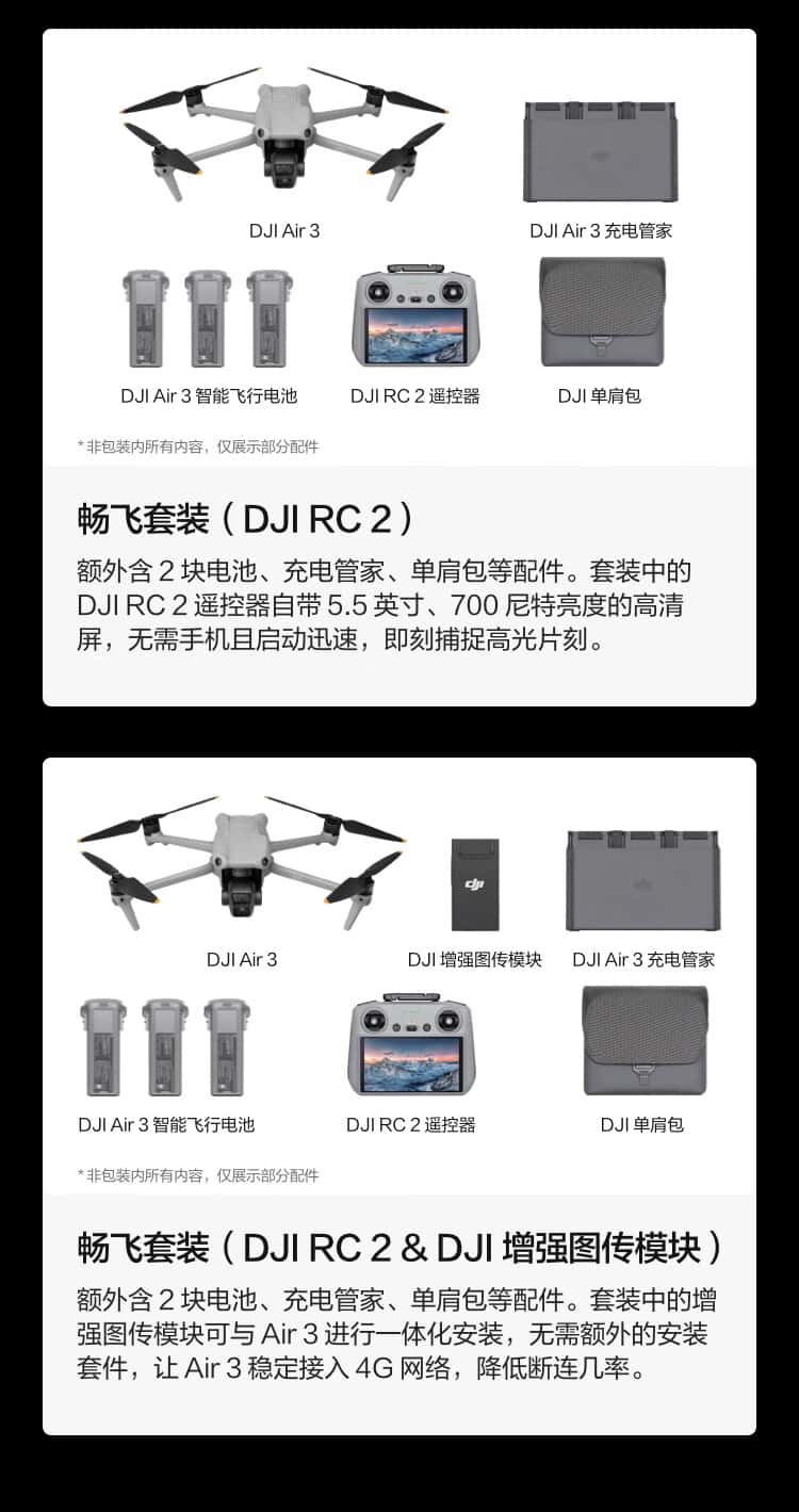 【新品预订】大疆(DJI)Air 3 广角双摄旅拍 高清专业航拍无人机 单机(RC-N2)【无货退款】