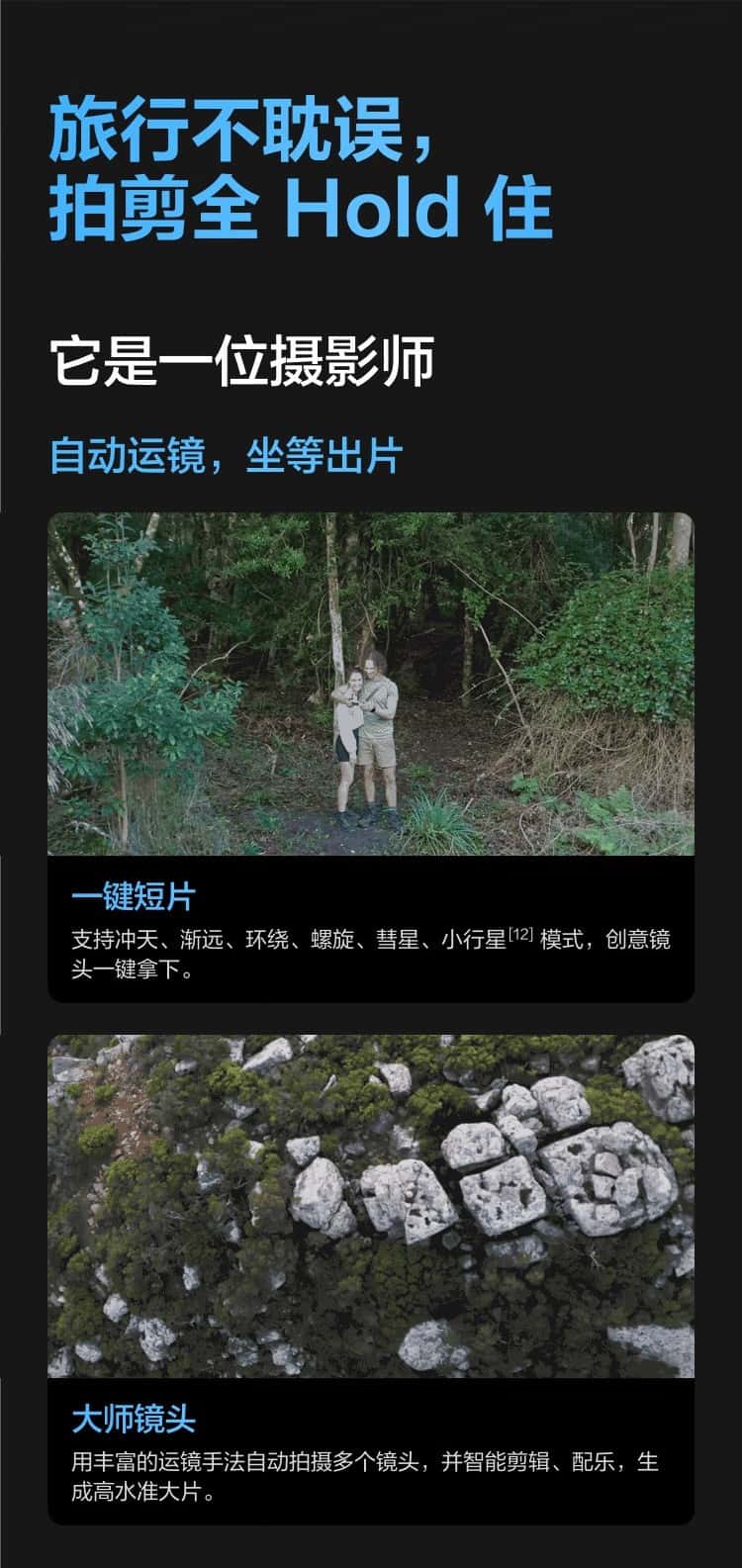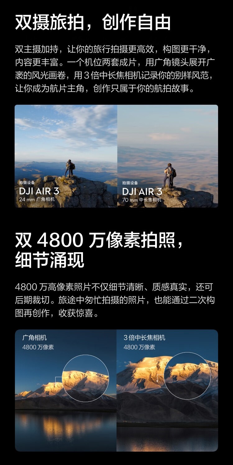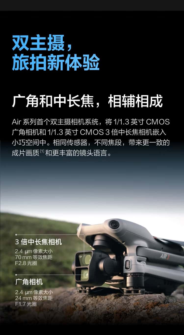 ● 中长焦广角双主摄,全向避障