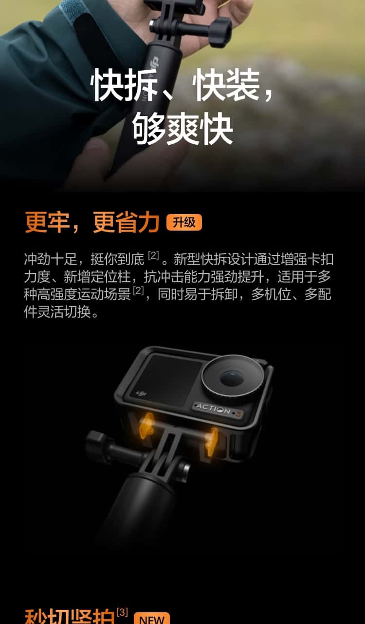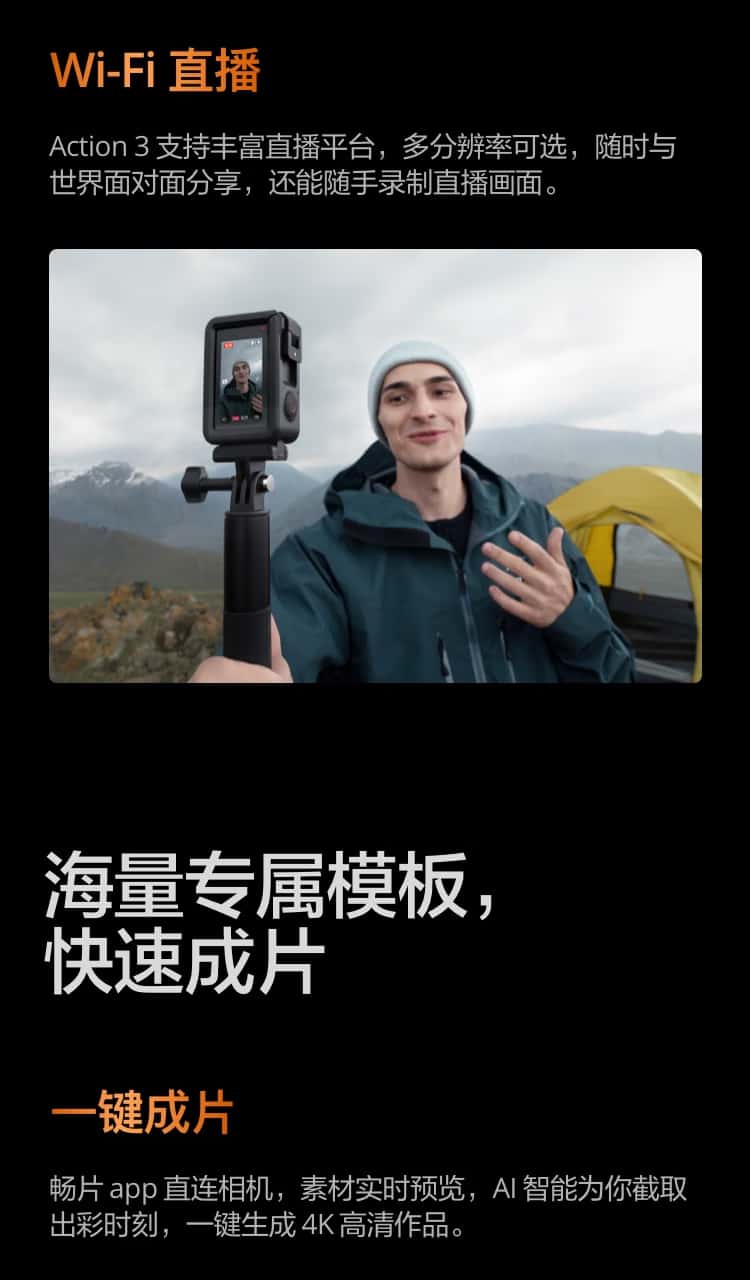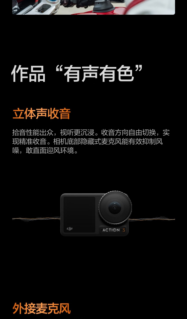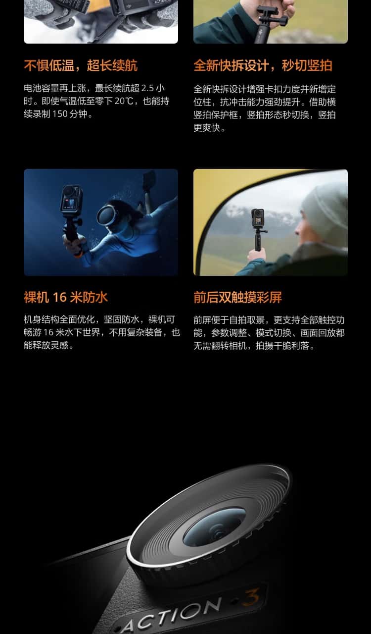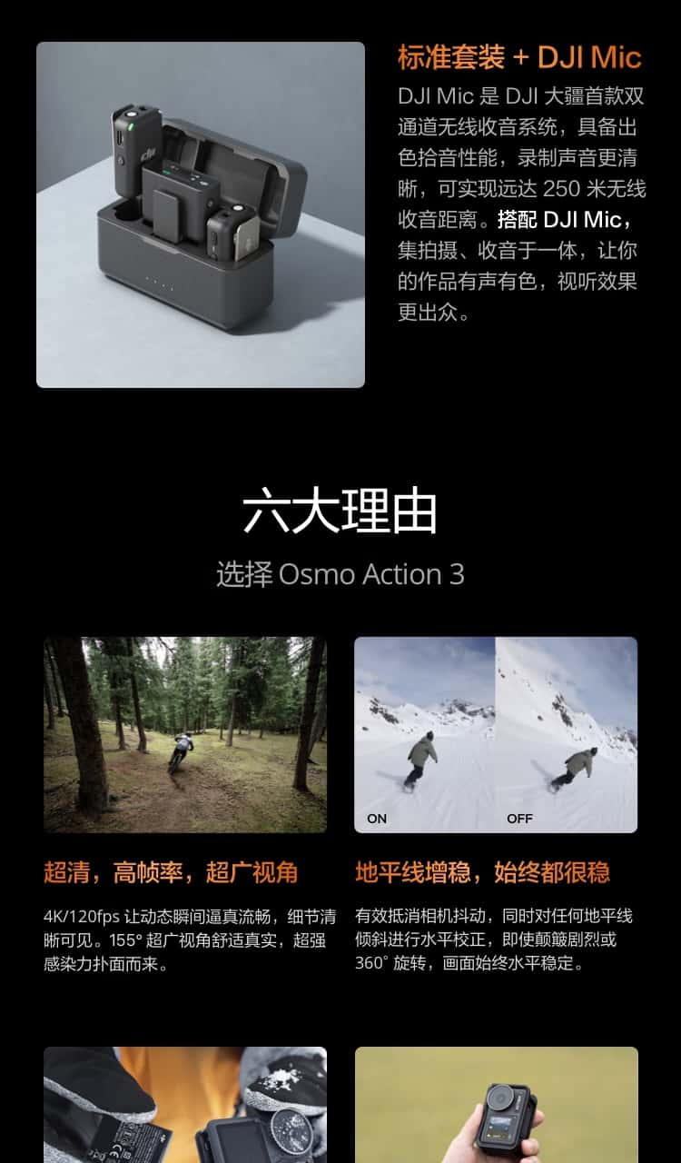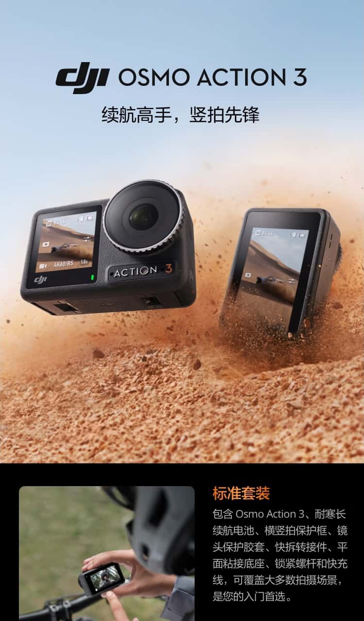 大疆(DJI)Osmo Action 3 运动相机 4K高清防抖Vlog拍摄头戴摄像机(标准套装)(黑色)
