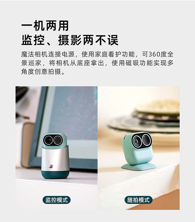 【赠内存卡】小默 家庭监控便携摄影魔法相机摄像头MA01(星湖绿)【313130】
